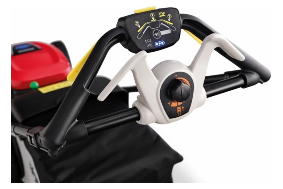 Положение высоты среза регулируется одним рычагом в 7 позициях от 25 до 79 мм, ширина среза составляет 47 см.