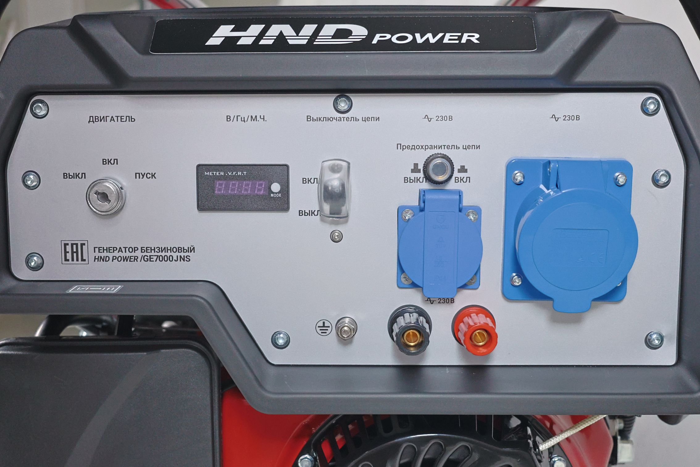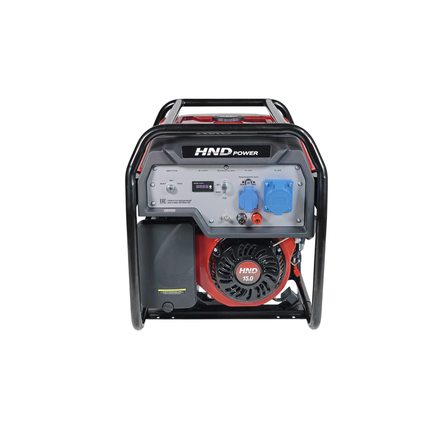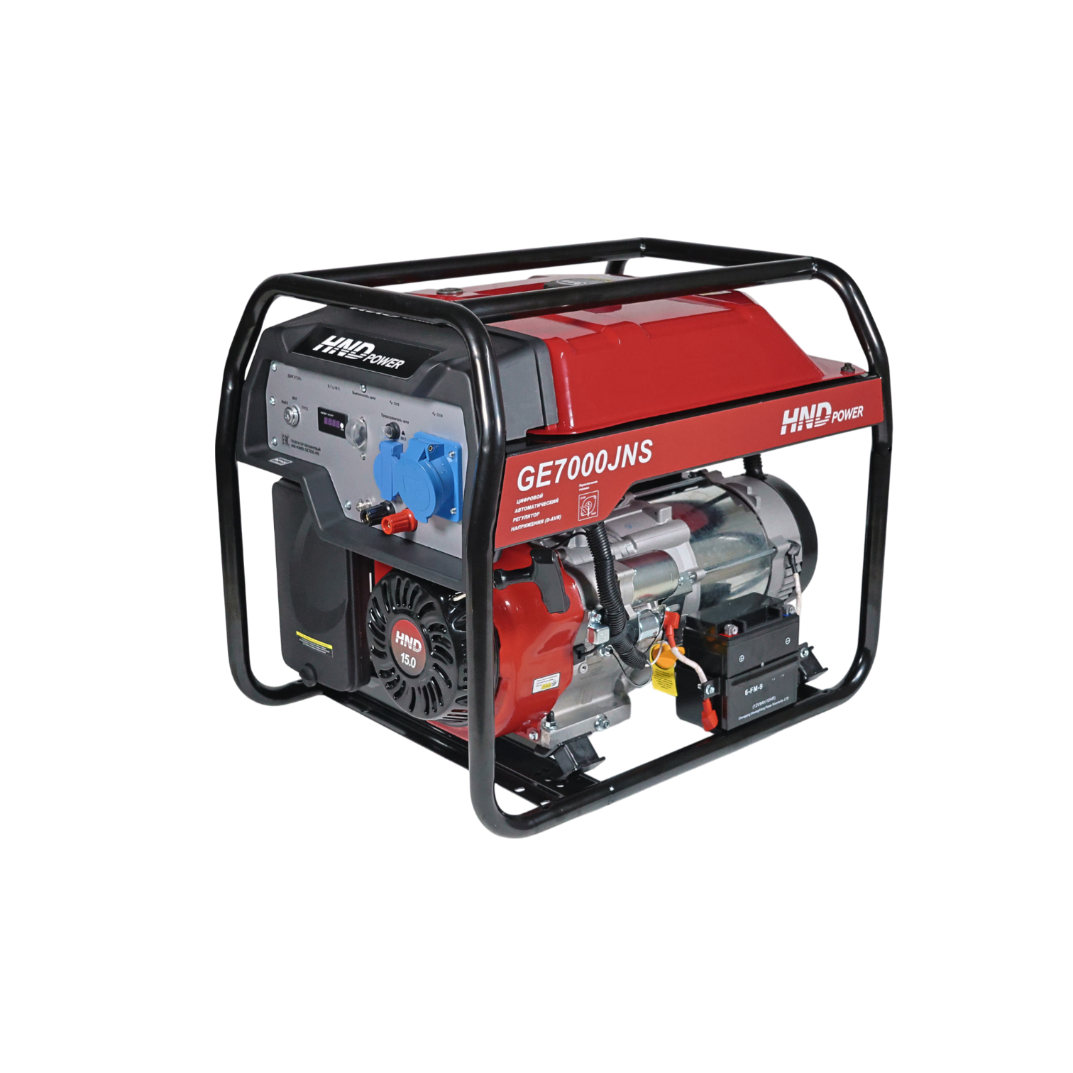 Инженеры установили в него одноцилиндровый четырехтактный двигатель JH420VE объемом 420 см³ (мощность - 15 л.с.). Благодаря конструкции с верхним расположением клапанов OHV достигается превосходный тепловой баланс, что снижает деформацию цилиндра и уменьшает расход масла. Для защиты силовой установки предусмотрена технология Oil Alert™: система автоматически отключает зажигание, если уровень масла падает ниже допустимого предела. Ключевое преимущество генератора HND GE 7000 JNS - наличие системы автоматического ввода резерва АВР и электростартера. При пропадании напряжения в центральной сети генератор запустится автоматически, обеспечивая бесперебойное питание котлов отопления, холодильного оборудования или производственных линий. Управление оборудованием упрощено благодаря цифровому дисплею и встроенному вольтметру. Особого внимания заслуживает эргономичность конструкции. Генератор ХНД защищен прочной стальной рамой, а в комплекте предусмотрены колеса и удобная рукоятка.
