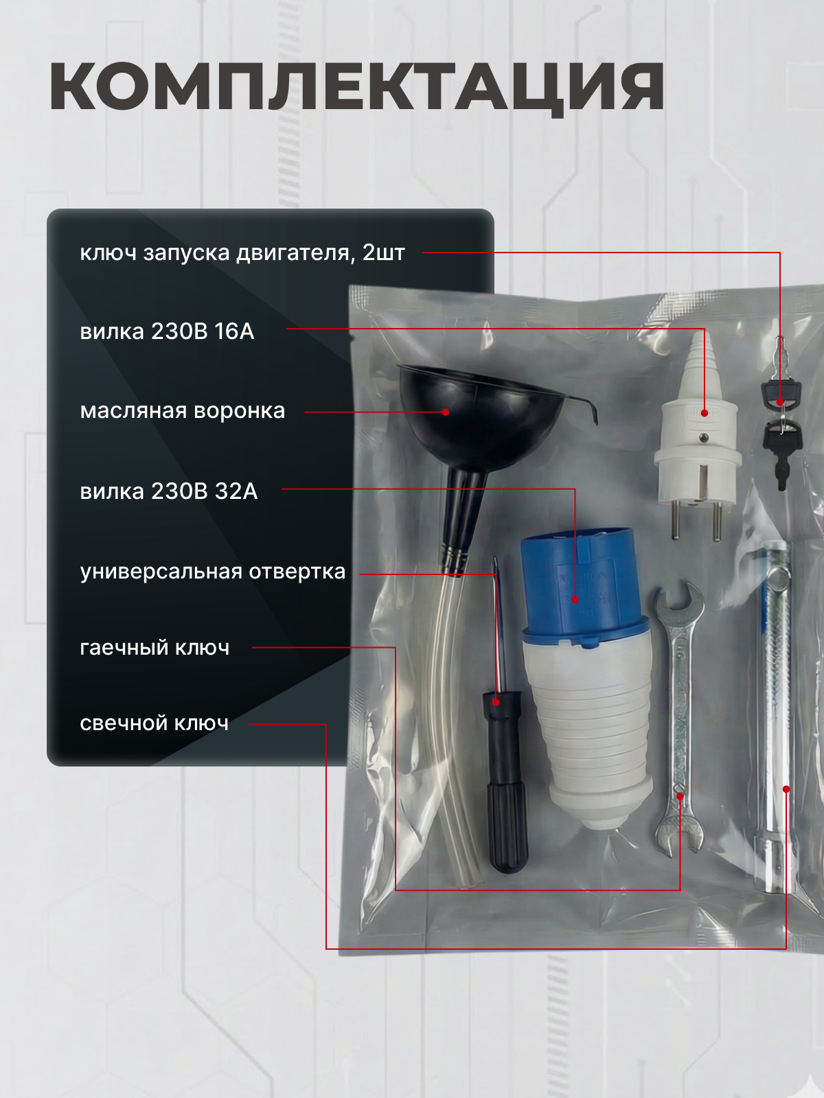 - электростартер / ручной стартер.