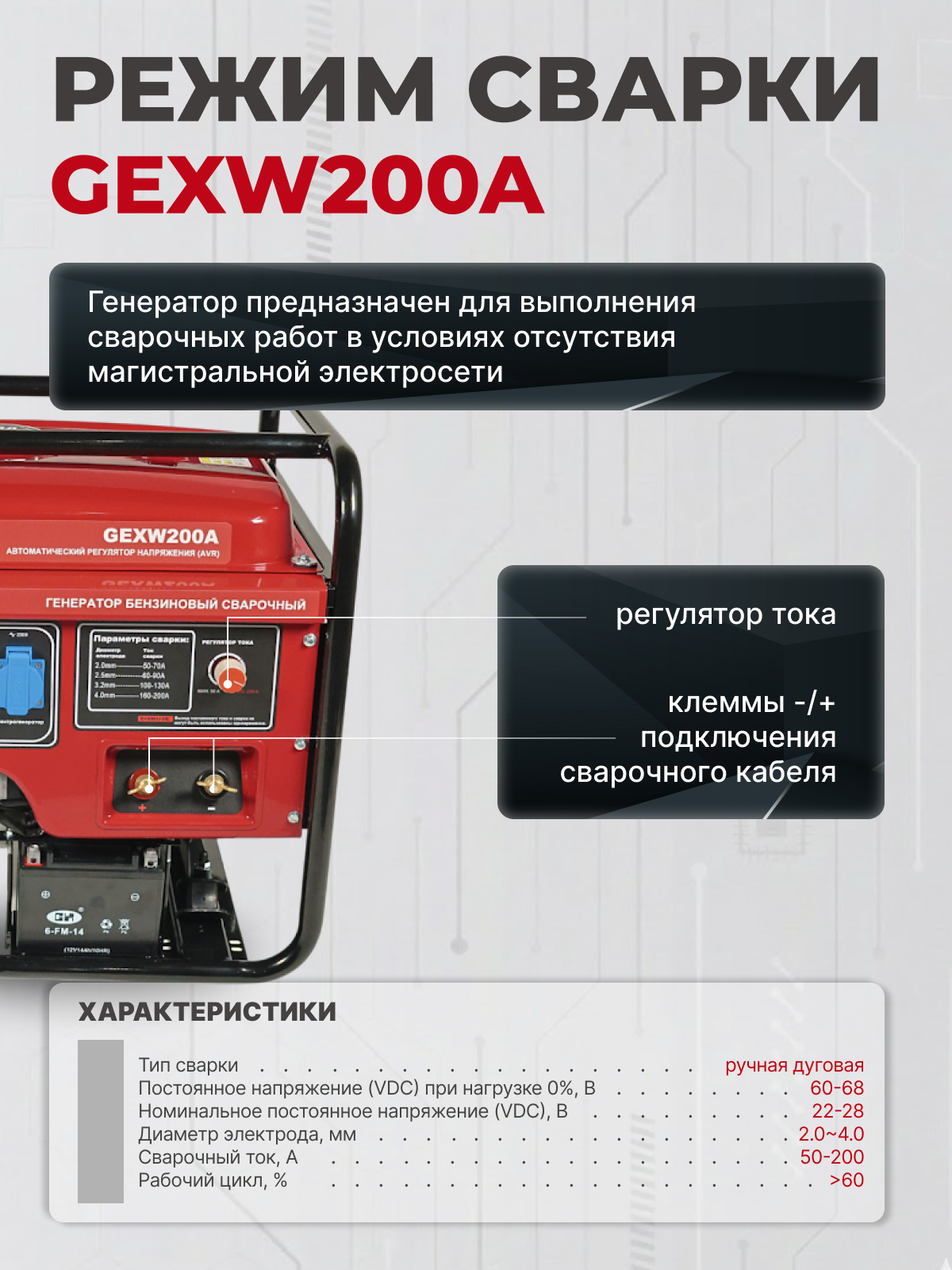 Сварочный модуль генератора HND GEXW200A демонстрирует высокую производительность: ток сварки регулируется в диапазоне 50-200 А, что позволяет уверенно работать с электродами диаметром от 2,0 до 4,0 мм. Высокое напряжение холостого хода (60-68 В) обеспечивает легкий поджиг и стабильность дуги на протяжении всего процесса сварки. Показатель рабочего цикла здесь превышает 60 %. Цифровая система зажигания CDI с регулируемым углом опережения способствует эффективному сгоранию топлива, что в сочетании с баком на 25 л обеспечивает продолжительный период автономной работы.