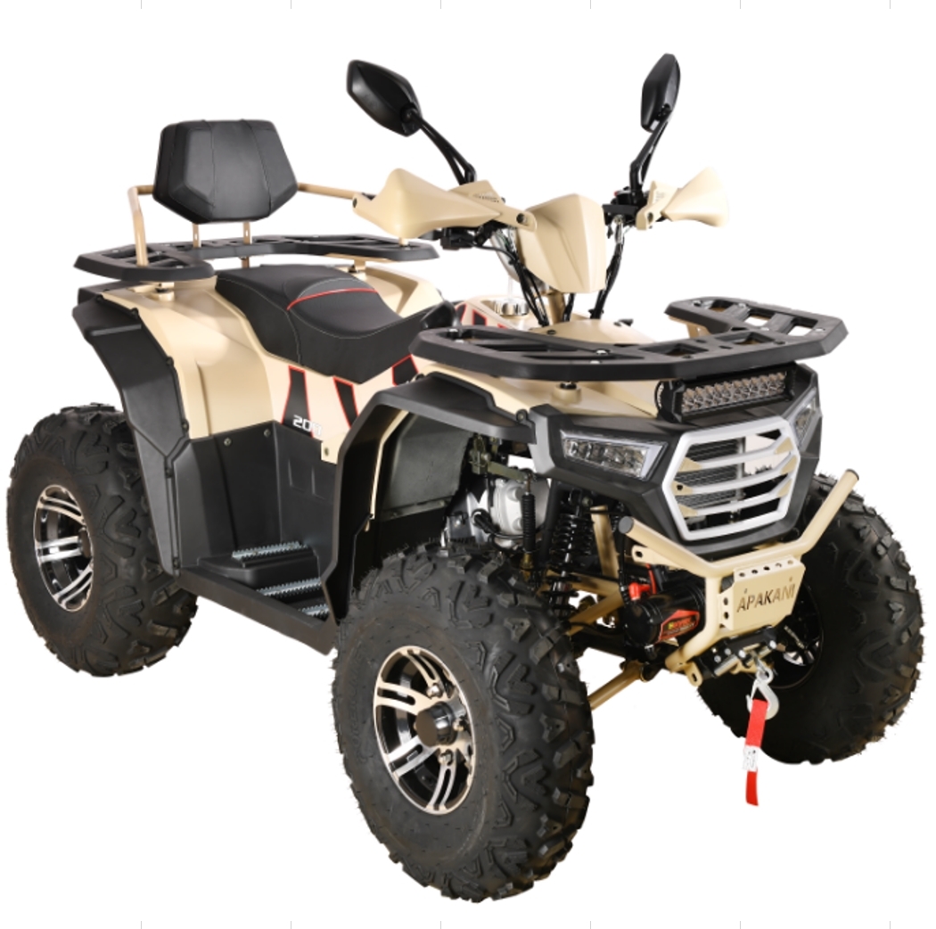 С цепным приводом и автоматической трансмиссией управление HAMMER 200L становится простым и интуитивно понятным. Высокая максимальная скорость до 65 км/ч и впечатляющий крутящий момент в 11,5 Н·м гарантируют динамичные поездки. Инженеры Apakani позаботились о безопасности и комфорте райдера. Квадроцикл имеет надежную подвеску с независимыми двойными амортизаторами спереди и одиночным амортизатором сзади, что обеспечивает отличную управляемость на пересеченной местности. Дисковые тормоза спереди и гидравлические тормоза сзади позволяют быстро остановиться в любых условиях.