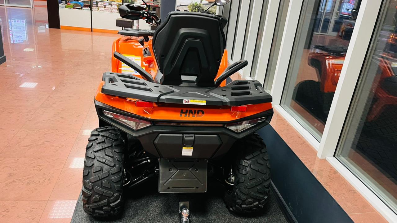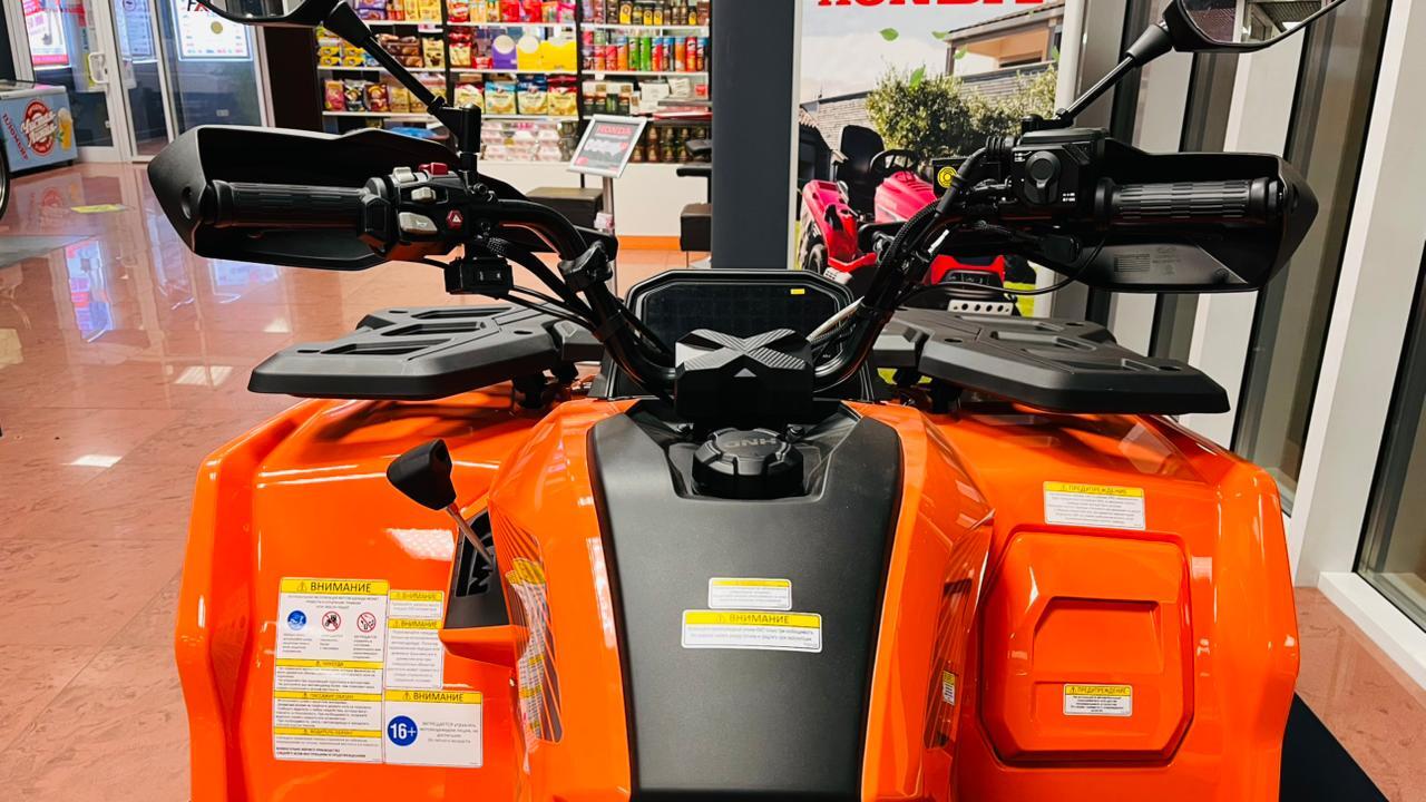 Квадроцикл HND QRX 550 EPS в оранжевом исполнении - новая модель линейки QRX, разработанная для преодоления сложных маршрутов. Он предназначен как для профессиональной эксплуатации, так и для любителей активного отдыха. Инженеры HND создали мотовездеход, адаптированный к российским реалиям. Высокий дорожный просвет 280 мм, широкие 25-дюймовые колеса, усиленная защита бамперов и рычагов обеспечивают выдающуюся устойчивость на любом бездорожье.