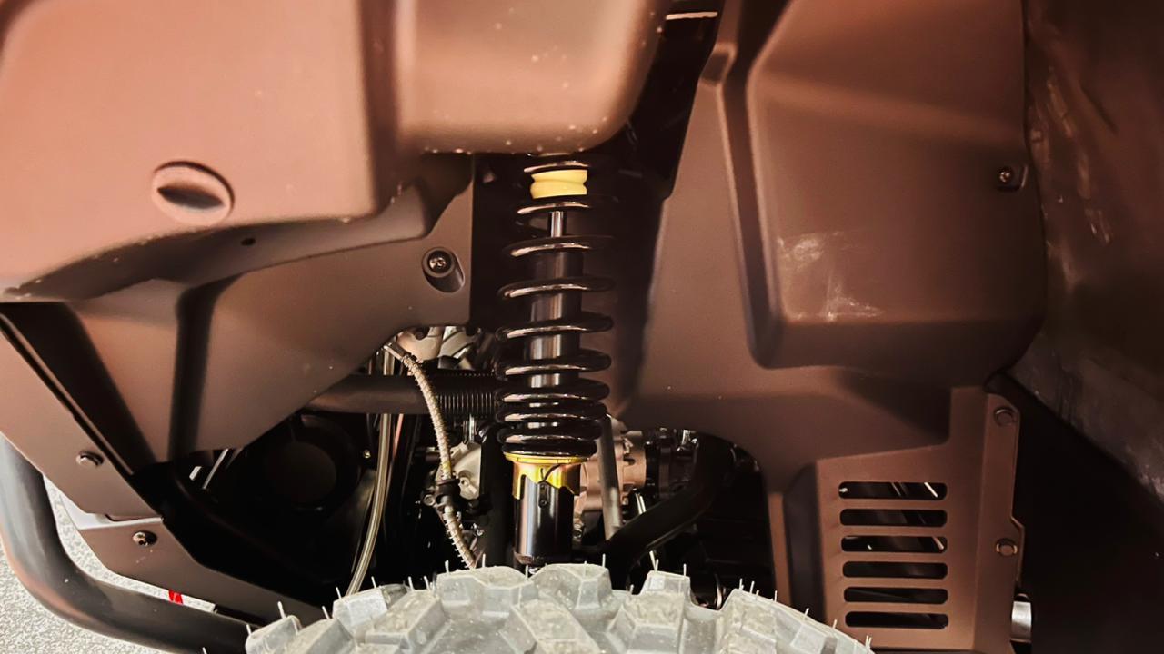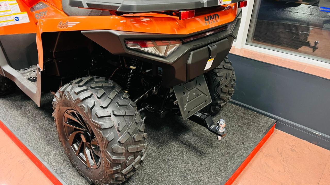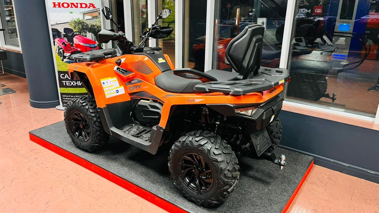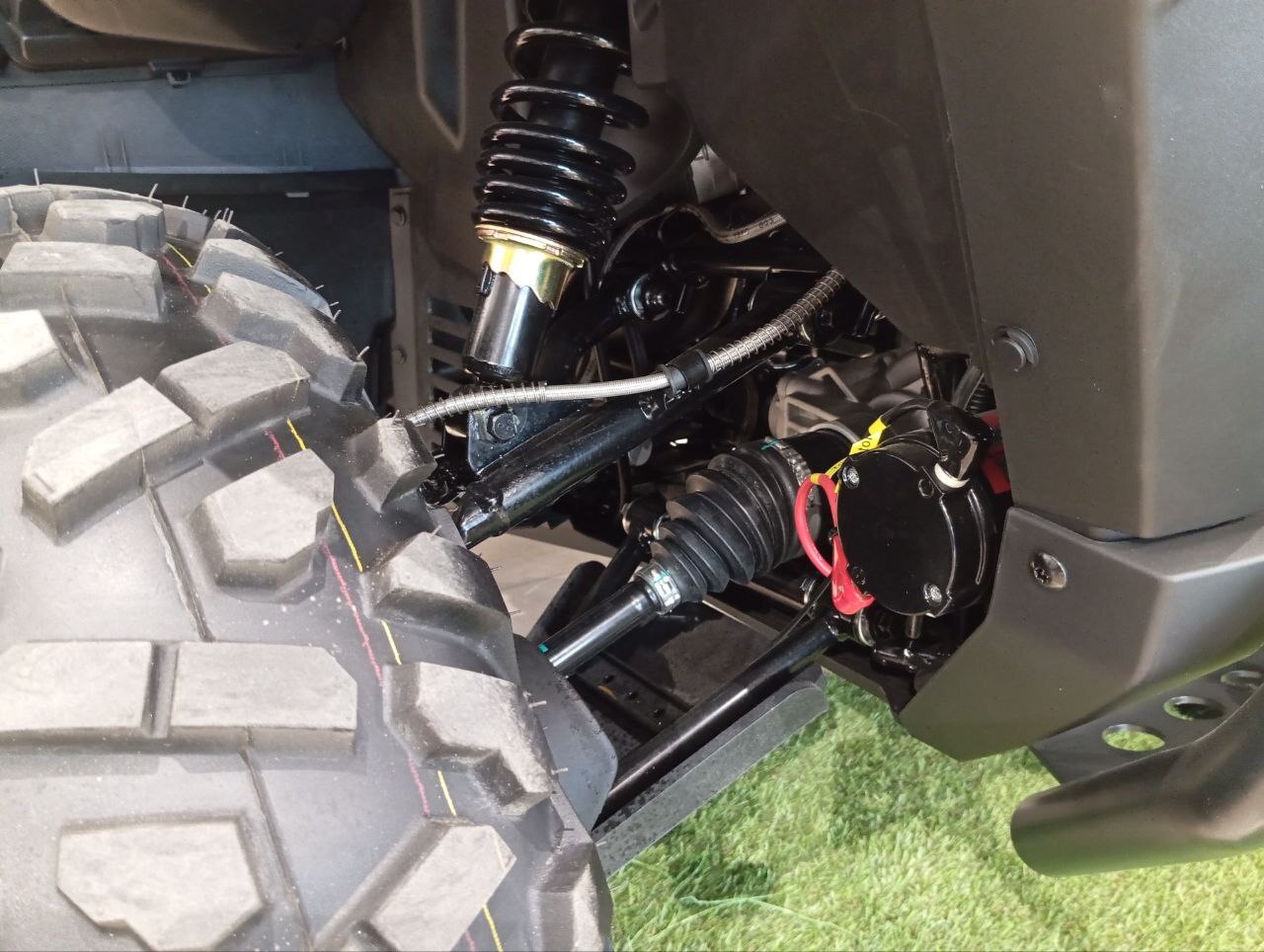 Модель от компании ХНД оснащена мощным одноцилиндровым двигателем объемом 493 см³ (33 л.с.), который в сочетании с инжекторной системой BOSCH EFI обеспечивает быстрый запуск электростартером и динамику до 84 км/ч. Канадский вариатор CVTech с выбором режимов трансмиссии и полноприводная система 4WD (переключаемая на 2WD), обеспечивают оптимальное сцепление. Возможность разблокировки заднего дифференциала повышает маневренность на твердых покрытиях. Комфорт и точный контроль на маршруте достигаются за счет энергоемкой независимой подвески с регулируемыми амортизаторами и двойными А-образными рычагами. Электроусилитель руля (EPS) дополнительно облегчает управление и снижает утомляемость.