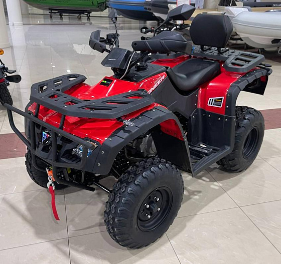 Инженеры установили в квадроцикл 250-кубовый двигатель с эффективным водяным охлаждением. Электростартер позволяет начать поездку без лишних усилий. Уверенность на любом маршруте обеспечивает современная тормозная система: и передний, и задний гидравлический дисковый тормоз гарантируют предсказуемое замедление. Не менее важна передняя подвеска на двойных А-образных рычагах и задняя на продольно рычажных рычагах, которая эффективно поглощает неровности, обеспечивая комфорт и постоянное сцепление с поверхностью. С емкостью топливного бака 13 литров и разумным расходом топлива 5,5л на 100км/ч квадроцикл 250 4x2 способен развивать скорость до 65км/ч, а комфортное и мягкое сиденье сделает дальнюю поездку приятной и комфортной.
