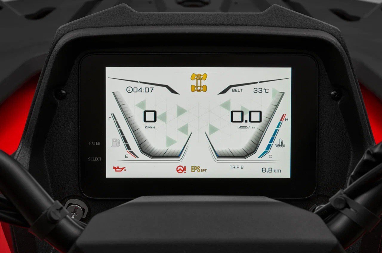 Оснащённый современным инжекторным двигателем, квадроцикл демонстрирует отличную динамику и уверенную тягу в любых условиях.
