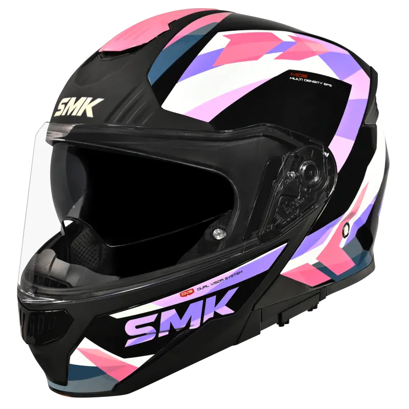 SMK Gullwing — эффектный шлем модуляр, адресованный в первую очередь любителям мотопутешествий и не только. Его подбородочная часть откидывается вверх вместе с визором, превращая закрытый шлем в открытый. Откидная часть надежно фиксируется в закрытом положении и по уровню безопасности SMK Gullwing ничем не уступает классическим интегральным шлемам. Для этого достаточно нажать клавишу на подбородке шлема и поднять его нижнюю часть вверх. Главное в конструкции данной модели, это максимальный комфорт, который обеспечивается набором дополнительных опций, незаменимых в дальней дороге. Впрочем, и в городе они не будут лишними. Комфорта много не бывает!