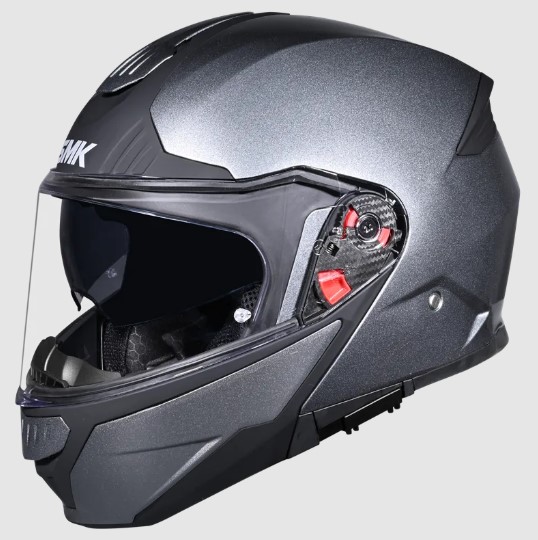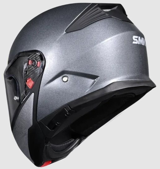 SMK Gullwing — эффектный шлем модуляр, адресованный в первую очередь любителям мотопутешествий и не только. Его подбородочная часть откидывается вверх вместе с визором, превращая закрытый шлем в открытый. Откидная часть надежно фиксируется в закрытом положении и по уровню безопасности SMK Gullwing ничем не уступает классическим интегральным шлемам.  Для этого достаточно нажать клавишу на подбородке шлема и поднять его нижнюю часть вверх. Главное в конструкции данной модели, это максимальный комфорт, который обеспечивается набором дополнительных опций, незаменимых в дальней дороге. Впрочем, и в городе они не будут лишними. Комфорта много не бывает!