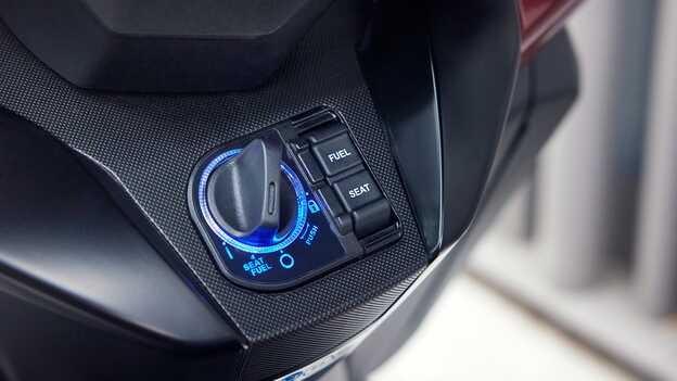 Скутер оснащен полноцветным 5'' TFT-экраном панели инструментов, сочетающий в себе стильный аналоговый спидометр и счетчик оборотов с современной цифровой информацией, ветровым стеклом с электрорегулировкой (диапазон 180 мм), системой бесключевого запуска двигателя и удобным держателем для бутылки в перчаточном отделении, повышающим практичность в ежедневных поездках.